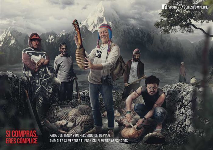 La campaña “Si compras, eres cómplice” fue conceptualizada por Apoyo Comunicación, además liderada por el Servicio Nacional Forestal y de Fauna Silvestre (Serfor) y Wildlife Conservation Society (WCS), con el apoyo del Ministerio de la Producción (Produce), el Servicio Nacional de Áreas Naturales Protegidas por el Estado (Sernanp), la Sociedad Peruana de Derecho Ambiental (SPDA) y la Asociación Peruana para la Conservación de la Naturaleza (APECO).