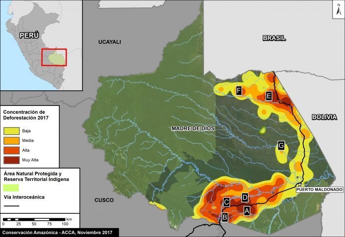 Las 20 826 hectáreas del 2017 sitúan la deforestación de ese año como la más alta de los últimos 17 años. En el 2016, la deforestación en Madre de Dios fue de 17 055 hectáreas según los “Datos Oficiales de Bosques y Pérdida de la Cobertura de Bosques Húmedos Amazónicos 2016”, presentado por el Serfor (Minagri)y el Programa Nacional de Conservación de Bosques para la Mitigación del Cambio Climático (Minam).