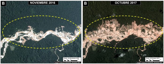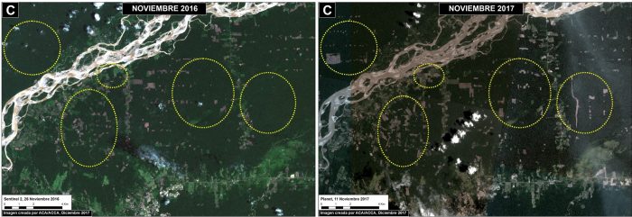 La minería ilegal, agricultura y la construcción de carreteras han sido los principales causantes de que en el 2017 la deforestación en Madre de Dios llegara a 20 826 hectáreas, la tasa más alta de los últimos 17 años, según un informe de MAAP (Monitoring of the Andean Amazon Project).