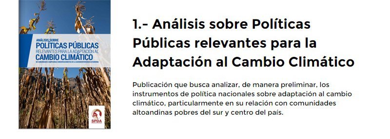En esta edición la SPDA pone al alcance de los investigadores en temas ambientales, mineros, sobre cambio climático y conservación sus más recientes publicaciones, entre las que encontrará títulos como: