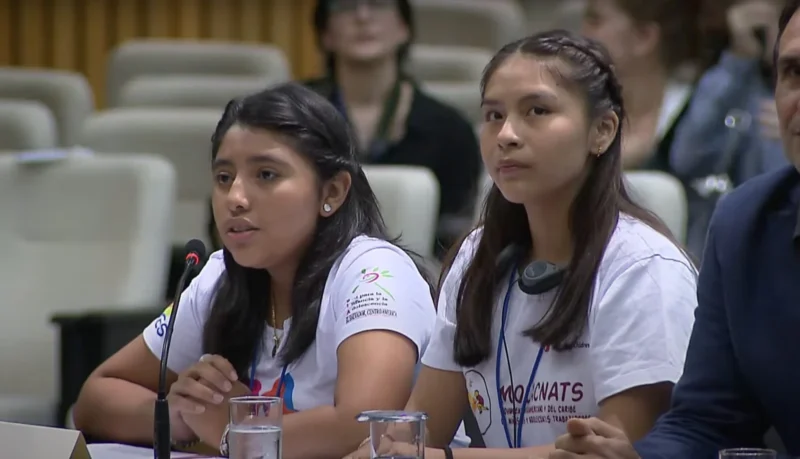 Hace un año, Joselim (Perú), y Camila (El Salvador), marcaron un hito histórico para la niñez de América Latina y El Caribe al participar en una audiencia pública frente a la Corte Interamericana de Derechos Humanos, el tribunal internacional más importante de la región, en representación de sus compañeras y compañeros del MOLACNNATS y REDNNYAS trasladando sus opiniones en el marco del proceso de opinión consultiva sobre “Emergencia Climática y los Derechos Humanos”.