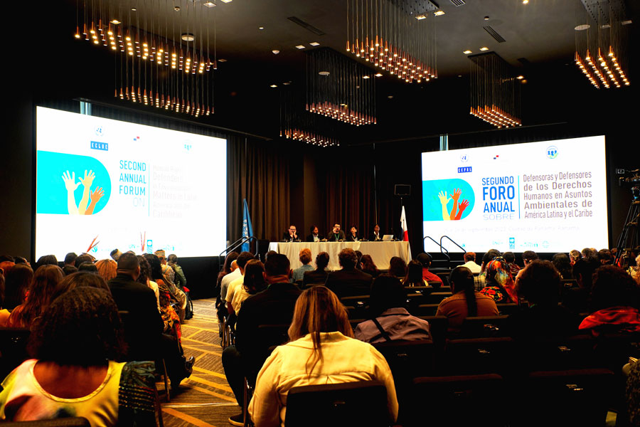 Hoy 26 de septiembre, inició el Segundo Foro Anual sobre Defensoras y Defensores de los Derechos Humanos en Asuntos Ambientales en América Latina y el Caribe en la ciudad de Panamá. Este espacio, que se realiza del 26 al 28 de septiembre, congrega a representantes de los países y de la sociedad civil de América Latina y el Caribe con la finalidad de abordar la situación de las defensoras y defensores ambientales, enmarcado en la implementación efectiva del artículo 9 del Acuerdo de Escazú.