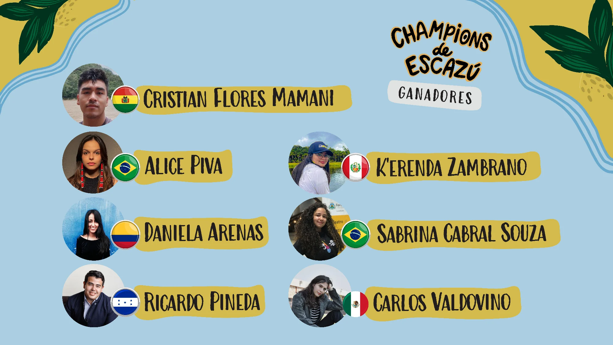 En calidad de champions, ahora estos líderes llevarán a cabo diferentes proyectos en Bolivia, Brasil, Perú, México, Colombia y Honduras, con el objetivo de difundir y generar incidencia sobre los aportes del Acuerdo de Escazú para la construcción de la democracia ambiental en sus países y, sobre todo, en la región.