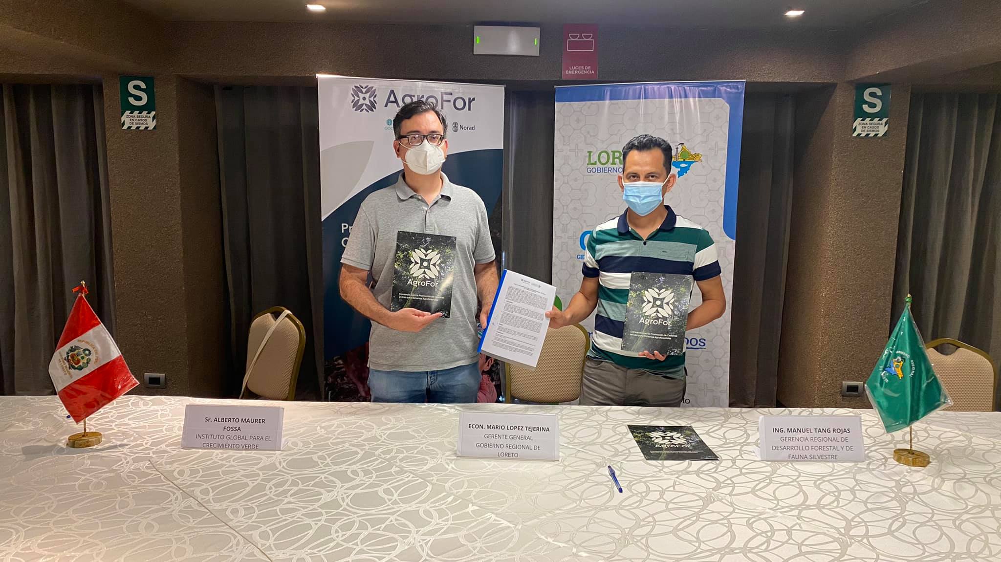 Del lado de AgroFor estuvo presente Alberto Maurer, representante del Instituto Global para el Crecimiento Verde (GGGI) y Coordinador General del Proyecto, quien luego de sellar su firma en esta carta de entendimiento con el GOREL, precisó cómo es que este tipo de contratos agroforestales será de gran ayuda a los esfuerzos realizados por el GERFOR de esta región.
