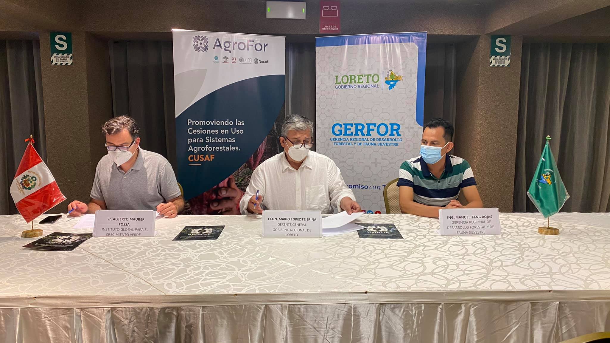 Con el propósito de mejorar la calidad de vida de sus agricultores y promover la gestión sostenible forestal y de sus ecosistemas, el Gobierno Regional de Loreto (GOREL), a través de su gerencia forestal, firmó una carta de entendimiento para impulsar contratos agroforestales a través de las Cesiones en Uso para Sistemas Agroforestales (CUSAF).