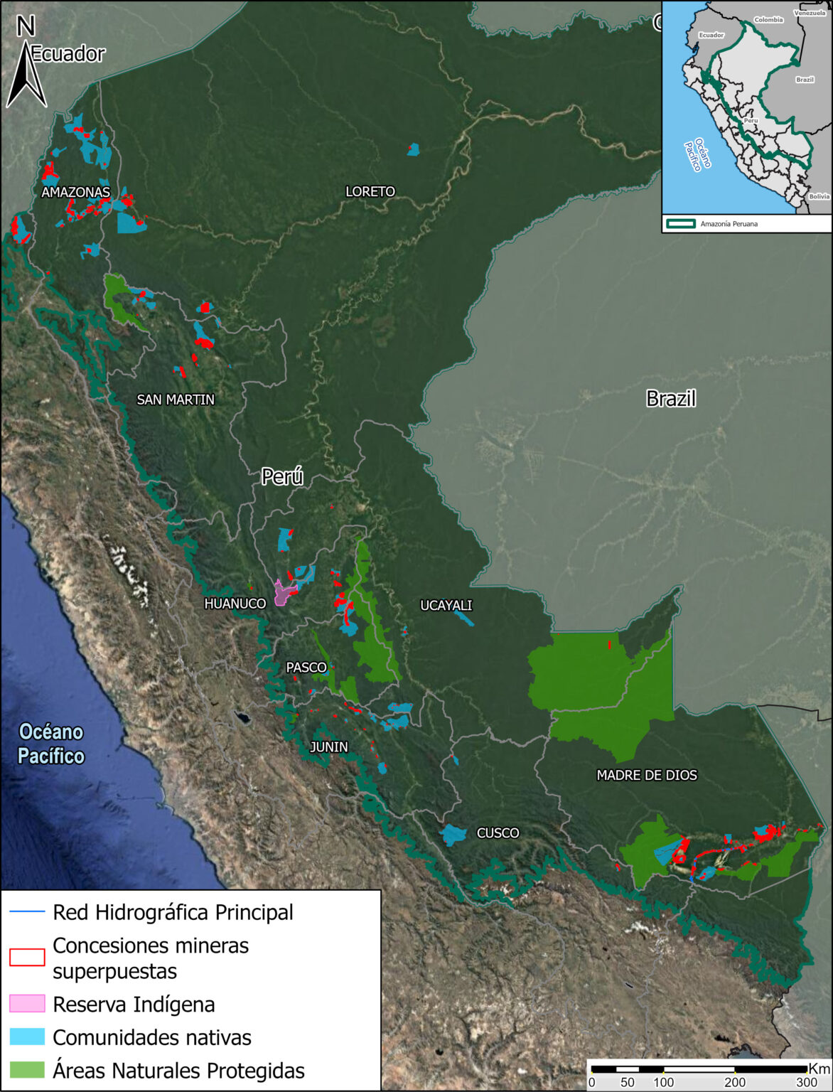 El último reporte del Proyecto Monitoreo de la Amazonía Andina (MAAP por sus siglas en inglés) alerta sobre el impacto de las concesiones mineras en Madre de Dios, Loreto, Amazonas, Huánuco, entre otras regiones. Mediante imágenes satelitales, se identificaron 799 concesiones mineras, destacando su superposición con comunidades nativas, cuerpos de agua, áreas naturales protegidas (ANP) y reservas indígenas.