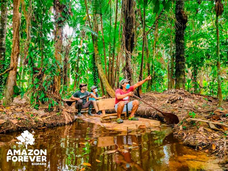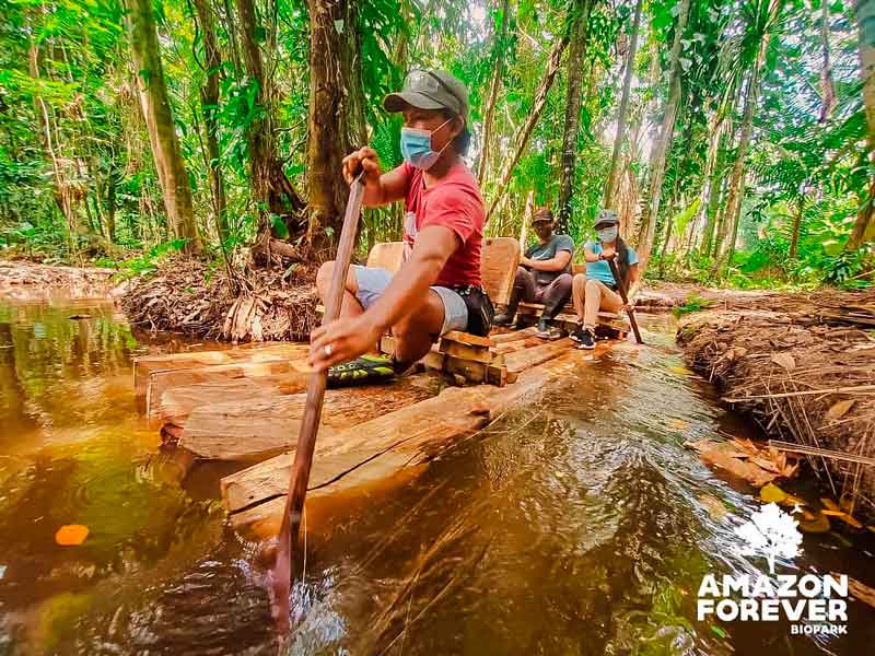 La aventura está incluida en el paquete que ofrece Amazon Forever Biopark, y más que asegurada con su circuito de balsas, un modulo del parque en que los exploradores pueden conocer uno de los ecosistemas más importantes y representativos de la Amazonía: los aguajales.