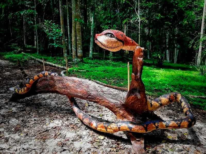 “La estrategia es utilizar el arte para inspirar sobre la conservación de la naturaleza. Entonces, en alianza con varios artistas amazónicos se crearon esculturas gigantes, seres mitológicos que representan a diversas especies en peligro de extinción y también a espíritus del bosque”, comenta el director de Amazon Forever Biopark.
