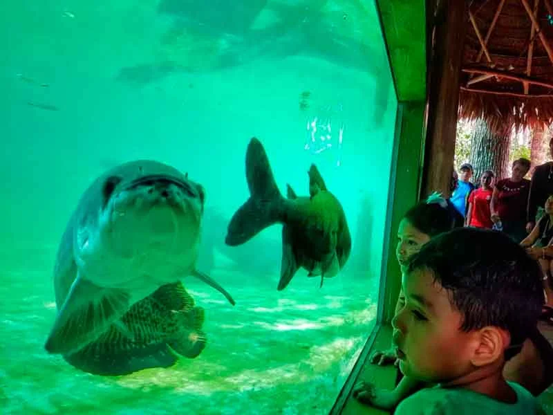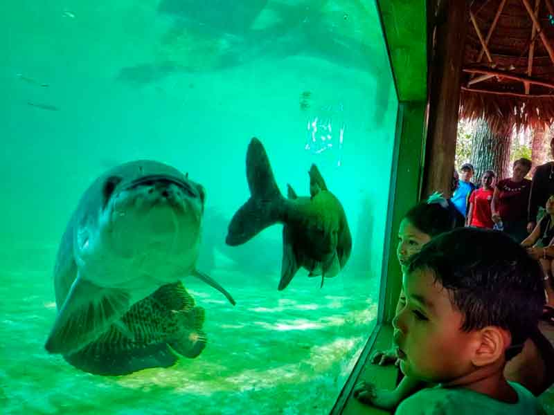 Otra de las novedades de este parque educativo es su acuario, que permite a los visitantes ver al Paiche, el pez más grande e imponente de la Amazonía, en su máximo esplendor para que de esta manera tomen conciencia sobre la importancia de preservar los recursos pesqueros.
