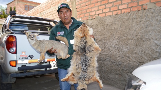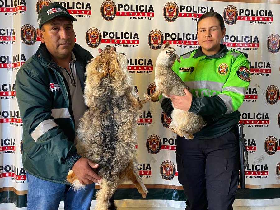 El Servicio Nacional Forestal y de Fauna Silvestre (Serfor) junto con efectivos de la Policía Nacional del Perú de la comisaría local, intervinieron a una pareja que poseía la piel de zorro andino y un zorro costeño disecados.
