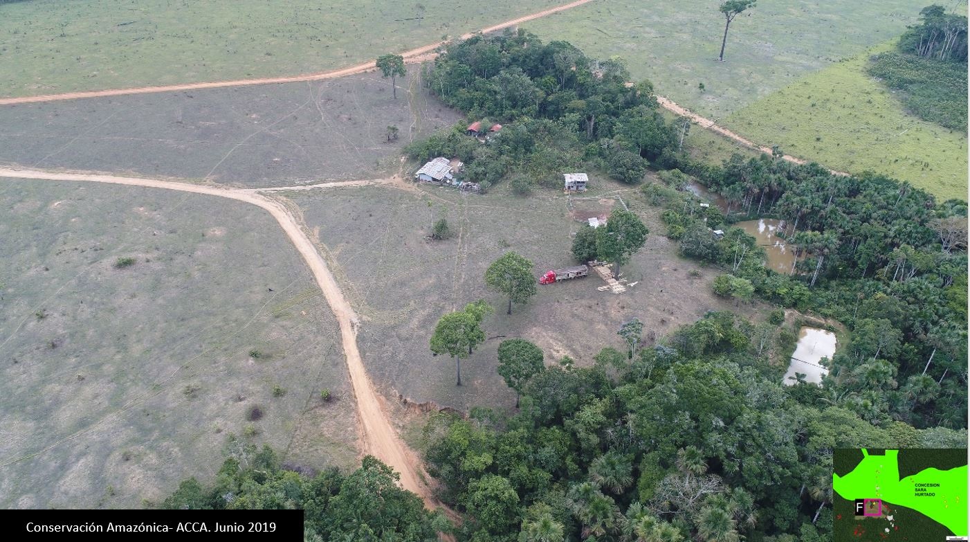 Caso F. Gracias al monitoreo integral se pudo identificar el centro de acopio cerca la Concesión Forestal de Castaña “Sara Hurtado”, y así hacer la denuncia penal adecuado. Fuente: ACCA.