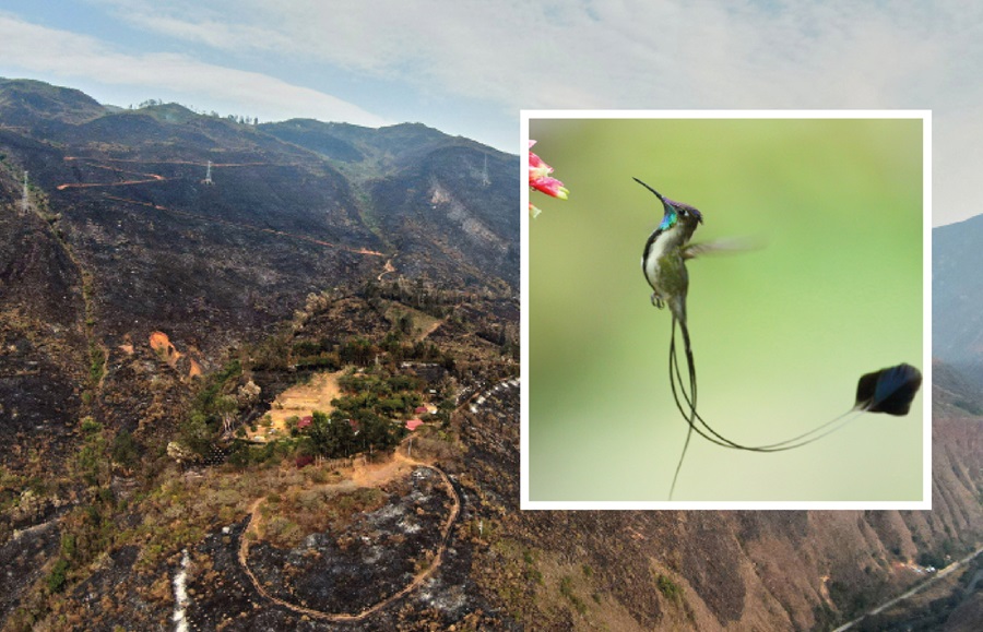 Incendio forestal: piden apoyo para área que protege el colibrí cola de espátula