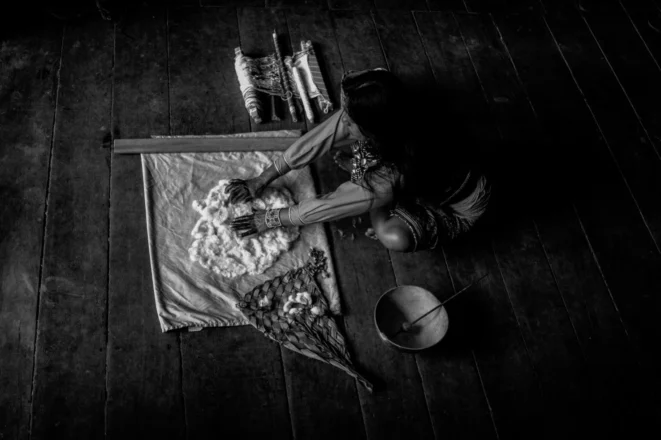 En las fotografías de la exposición se pueden apreciar, por ejemplo, los procesos para el hilado y tejido tradicional, la pintura kené, la vestimenta típica del lugar, la curación a través de los íkaros, entre otros.
