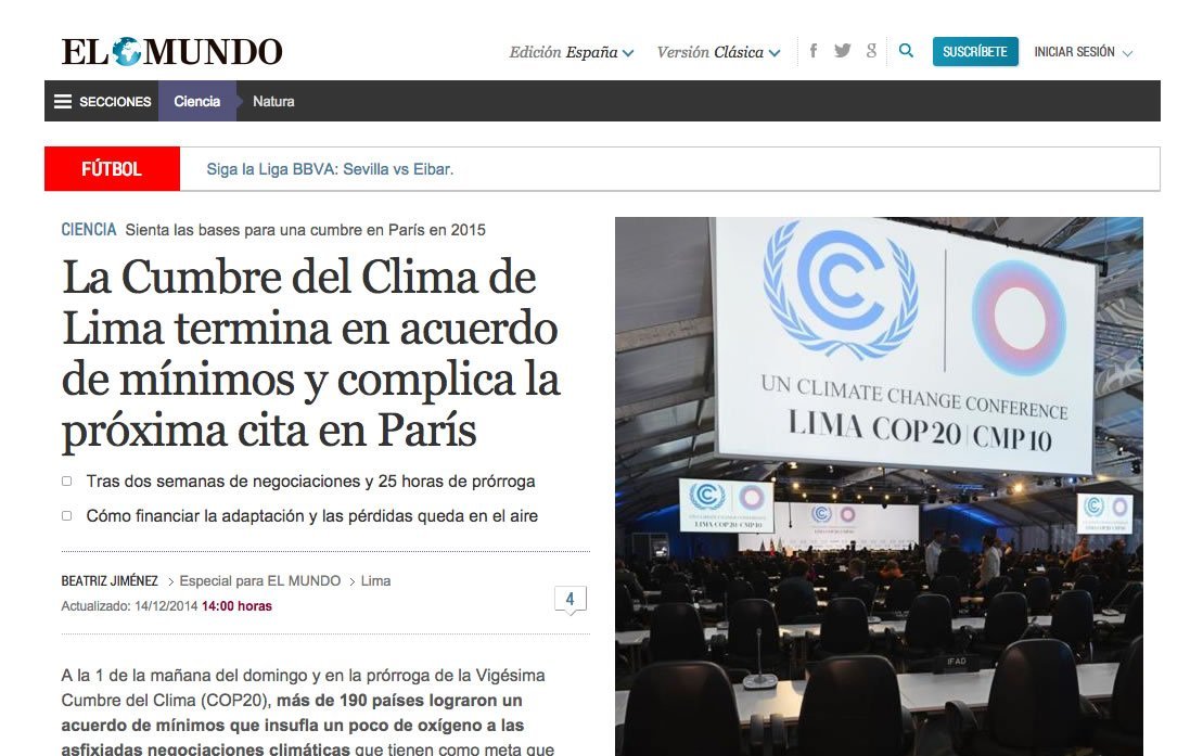 El Mundo: La Cumbre del Clima de Lima termina en acuerdo de mínimos y complica la próxima cita en París http://goo.gl/Z44ACL