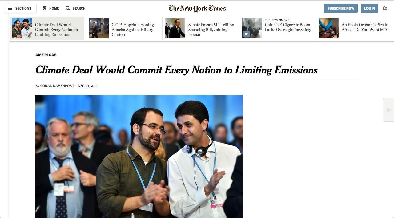 New York Times: Acuerdo climático podría comprometer a cada nación a limitar sus emisiones http://goo.gl/RbxlxH
