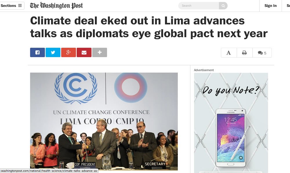 The Washington Post: Acuerdo climático se ganaba en conversaciones avanzadas en Lima mientras diplomáticos ven el pacto global del próximo año http://goo.gl/12m5gP