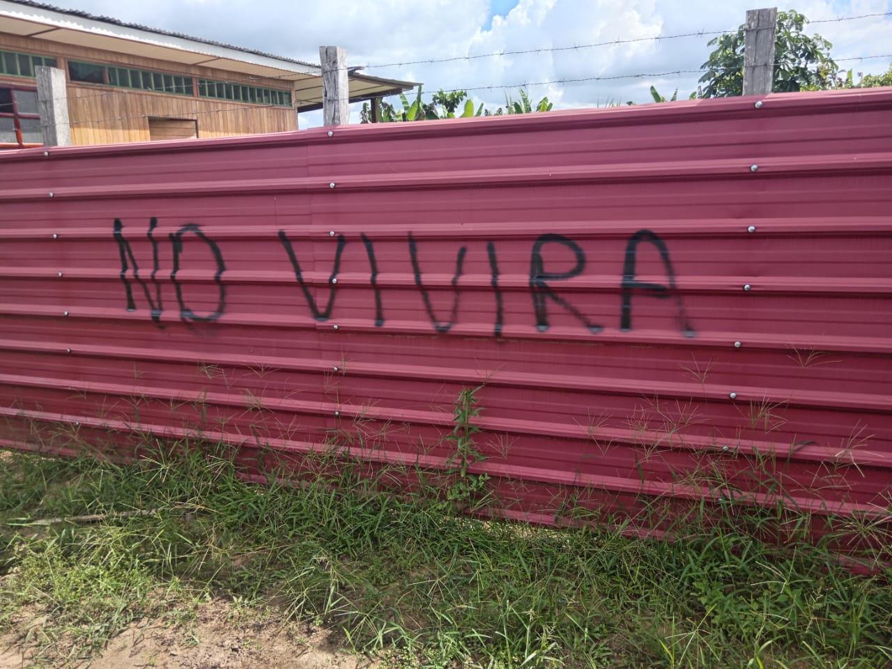 • Sujetos no identificados dejaron un mensaje amenazante en la pared del domicilio del líder del pueblo shipibo-konibo, quien viene denunciando el avance de actividades ilegales en territorios indígenas.