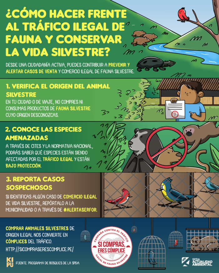 Desde una ciudadanía activa, puedes contribuir a prevenir y alertar casos de venta y comercio ilegal de vida silvestre. Conoce cómo en la siguiente infografía: