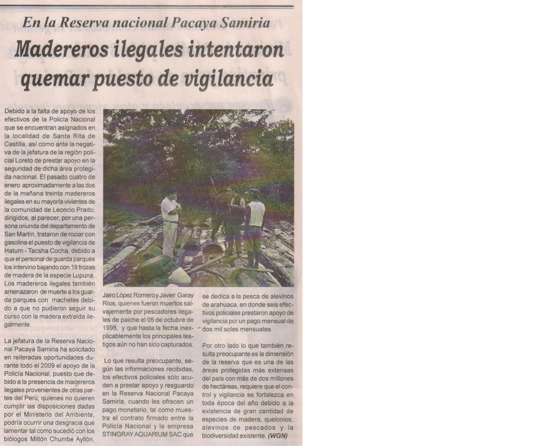 Treinta madereros ilegales trataron de rociar con gasolina el puesto [...]