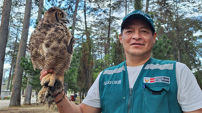 Tras un proceso integral de recuperación, el búho -también conocido como búho cornudo y que habita en los bosques de la región- fue devuelto a su hábitat en los parajes de la provincia de Concepción, en los alrededores del convento de Santa Rosa de Ocopa. “Este entorno proporciona el escenario ideal para que el ave cumpla su rol de controlador biológico de mitigar la creciente población de roedores que afecta al convento y casa vecinas de la zona”, indicó Serfor.