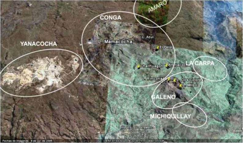Mapa con la ubicación de los proyectos Conga, Galeno y Michiquillay