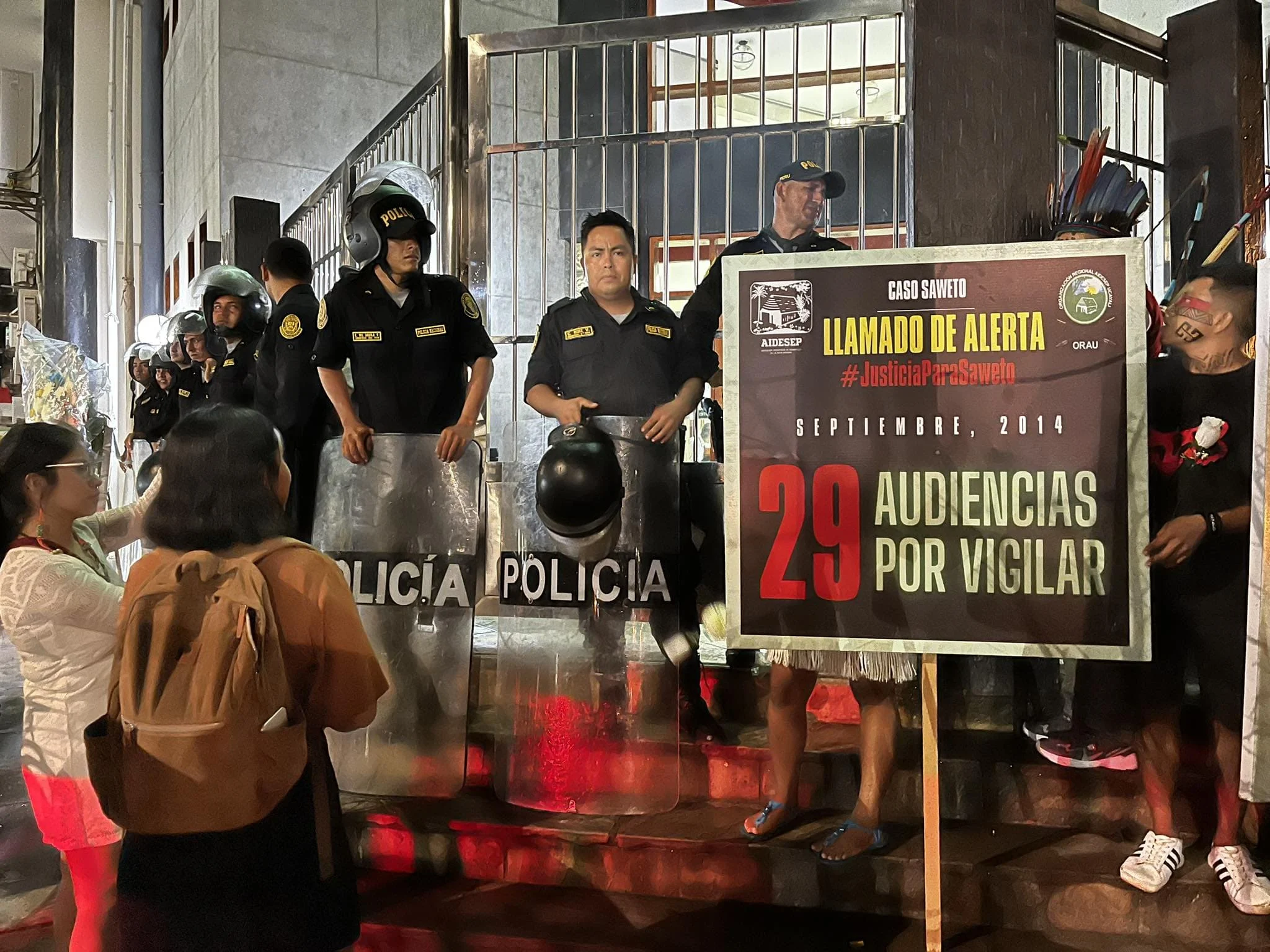 - Organizaciones indígenas y civiles participaron en una vigilia en el frontis del Poder Judicial de Ucayali para brindar apoyo a los familiares de las víctimas.