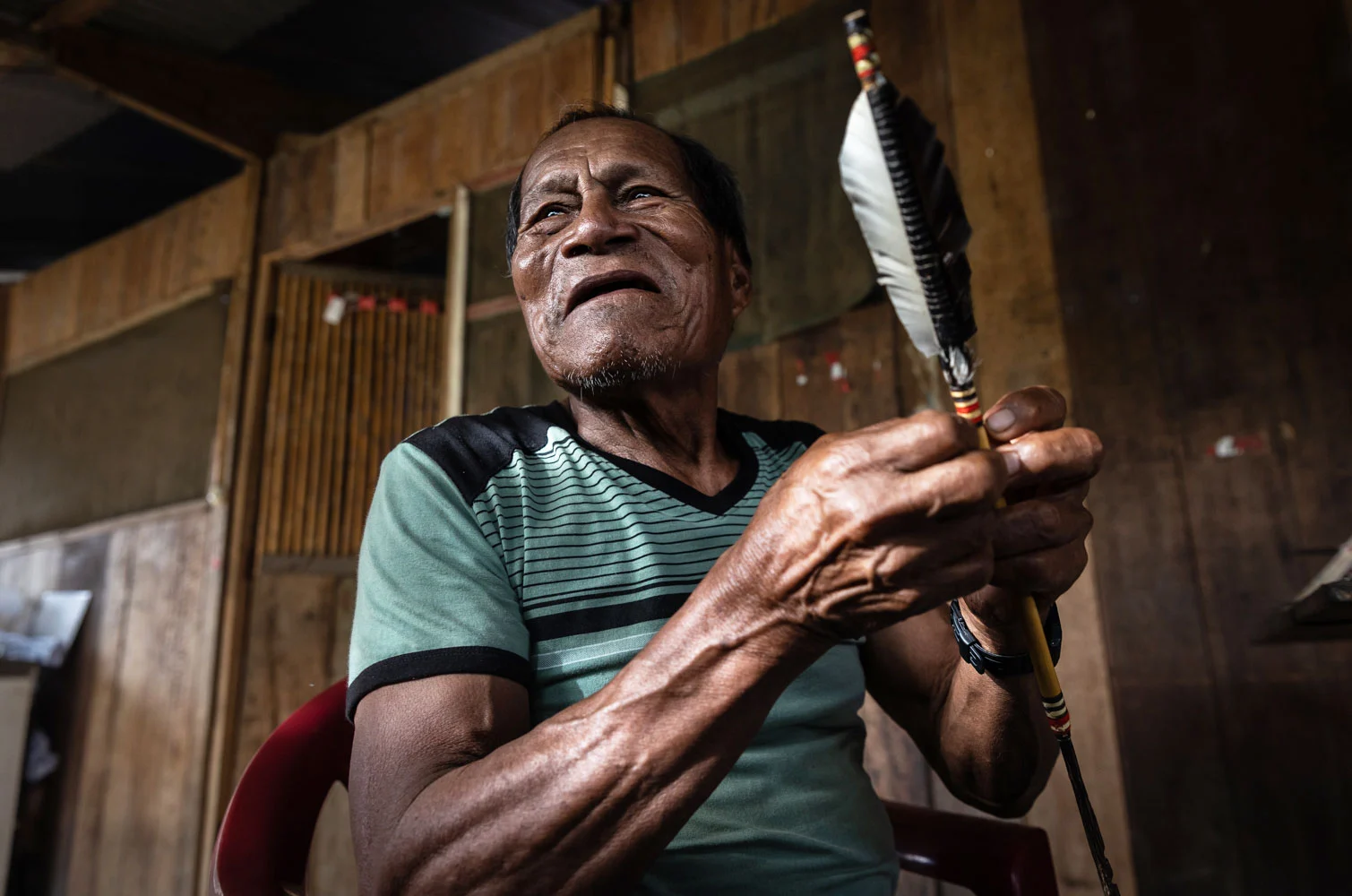 Julio Yuri Yagar, sabio harakbut reconocido como ‘Personalidad Meritoria de la Cultura’, comparte sus saberes ancestrales en el cortometraje Chamán, premiado en el Festival de Cine Amazónico. Foto: Diego Pérez / SPDA
