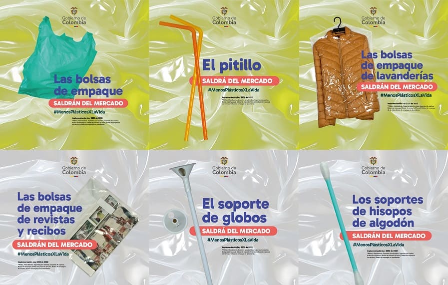 Según informó el Ministerio de Ambiente y Desarrollo Sostenible de Colombia, si bien la ley establece la eliminación de 21 productos plásticos de un solo uso (al 2030), desde el 7 de julio de 2024 se iniciará con ocho productos.