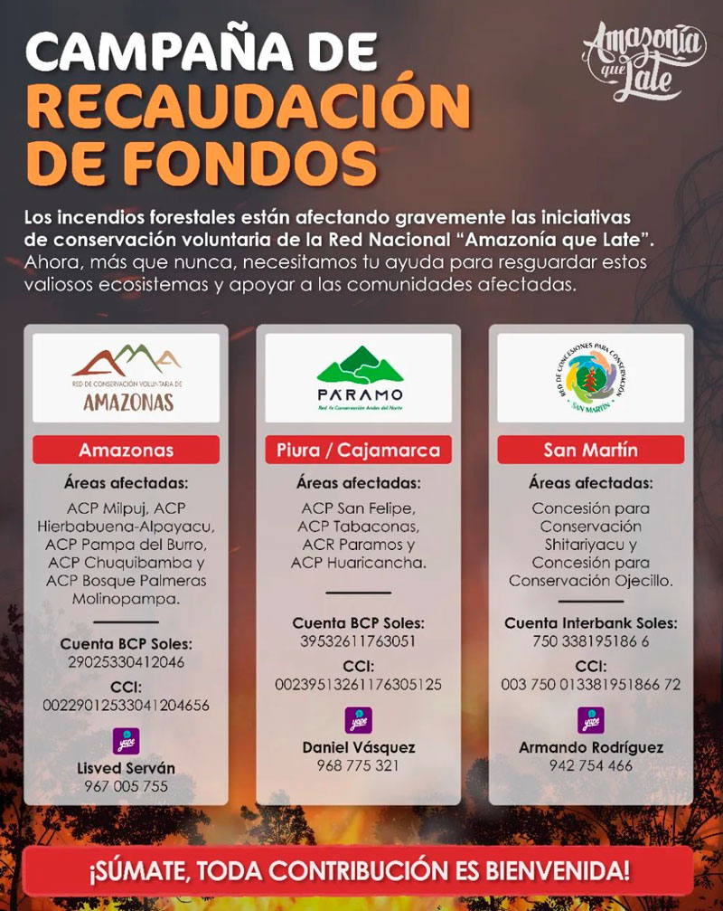 Abarca las regiones de Piura, Cajamarca, Amazonas y San Martín. La recaudación ayudará a resguardar y restaurar los valiosos ecosistemas, así como apoyar a las comunidades afectadas.