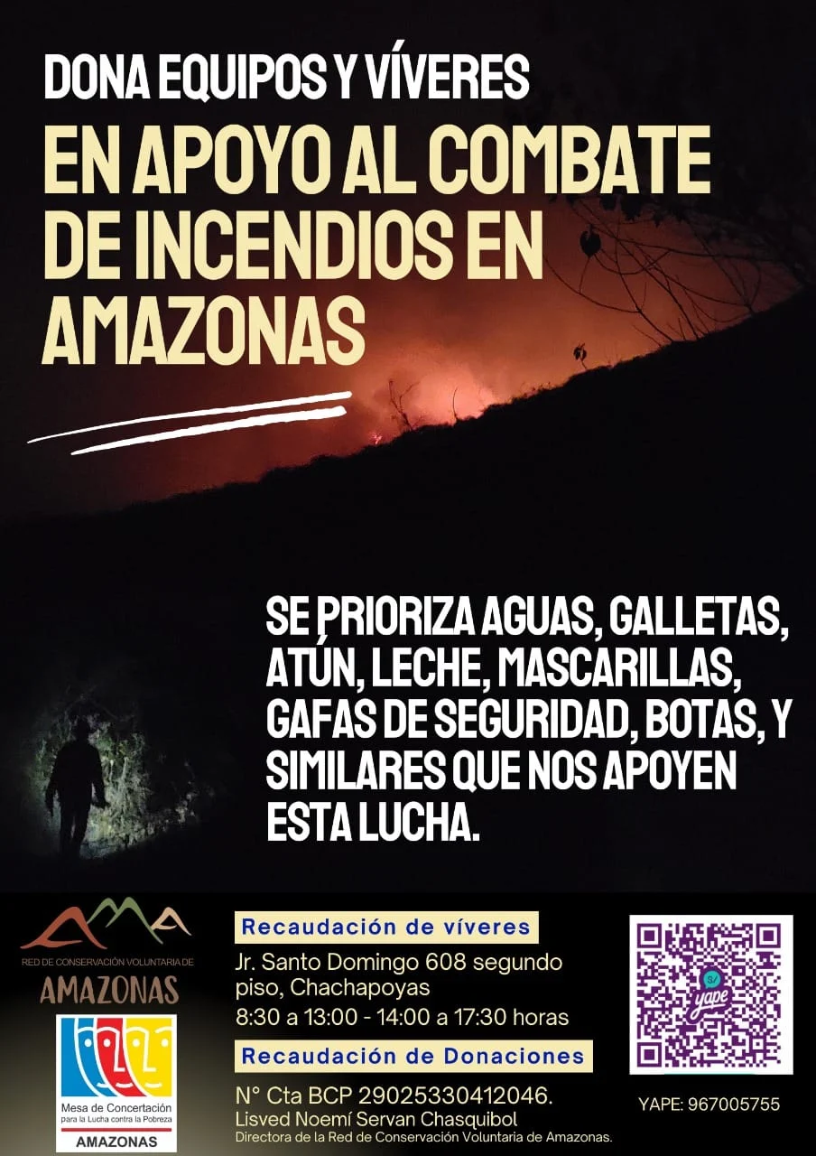 También puedes apoyar con víveres, equipos de seguridad en Chachapoyas en el Jr. Santo Domingo 608, segundo piso. Horario de 8:30 a 13:00 y de 14:00 a 17:30.