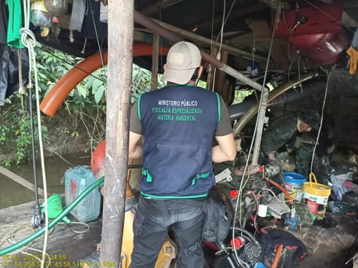 Según la Fiscalía, las embarcaciones ilícitas estaban equipadas con motores petroleros de succión, mangueras, alfombras, bombonas, rotores, embarcaciones auxiliares (peque peque) y tuberías.