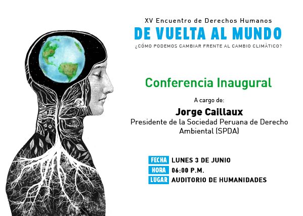 El 3 al 7 de junio se realizará en el campus de la Pontificia Universidad Católica del Perú (PUCP) el XV Encuentro de Derechos Humanos: De vuelta al mundo, ¿cómo cambiamos frente al cambio climático?, evento que contará con la presencia de la ministra del Ambiente, Lucía Ruiz; el doctor Salomón Lerner, presidente emérito del IDEHPUCP; Augusto Castro, director del INTE-PUCP; y la directora ejecutiva del IDEHPUCP, Elizabeth Salmón.