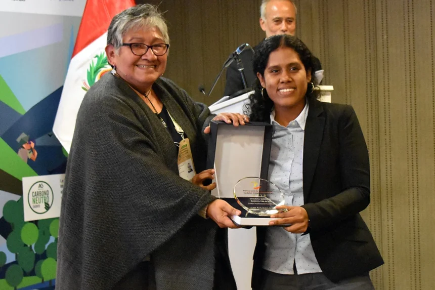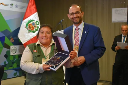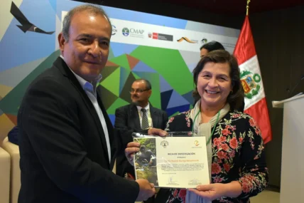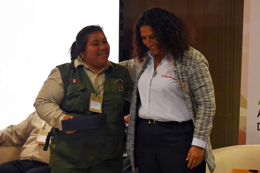 Fabiola Muñoz, ministra del Ambiente, señaló: “El premio Carlos Ponce del Prado muestra el valor del compromiso y la convicción. La conservación es una apuesta de vida, no es un trabajo, no es un pasatiempo. En este momento en el mundo solo podemos seguir quienes estemos comprometidos con la acción. Eso es lo que debe motivarnos a avanzar”, luego de darle el reconocimiento de “Personalidad Ambiental” a Mariella Leo, presidente de Apeco y profesional dedicada a la conservación biológica en el Perú desde 1978.