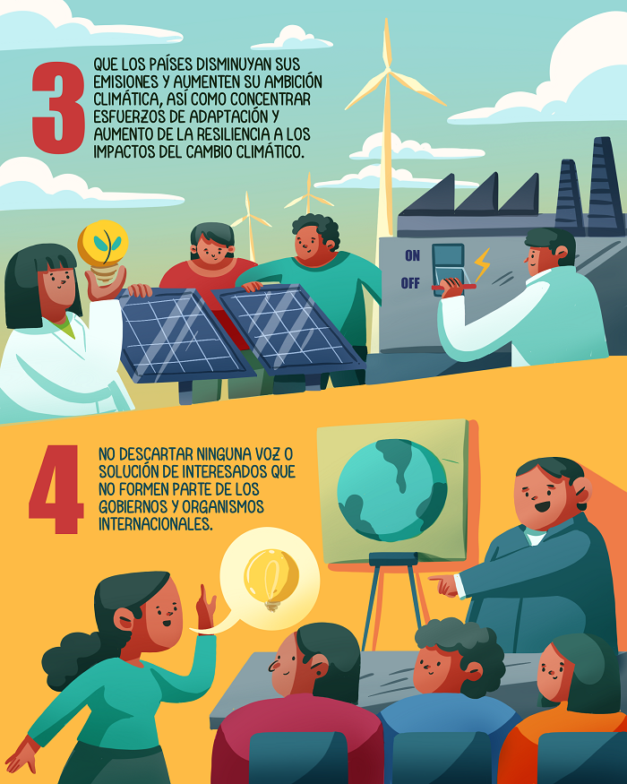 El segundo punto radica en que los gobiernos concluyan los temas pendientes y negociaciones a fin de cumplir con los objetivos del Acuerdo de París.