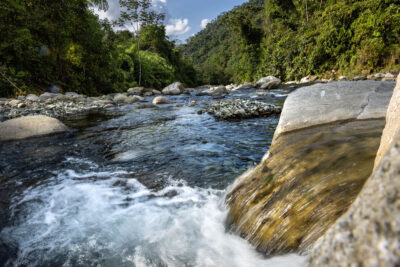 Para de esta riqueza natural es el río Araza, que atraviesa ese territorio como una columna vertebral. Sus aguas abastecen a las comunidades del distrito de Camanti y a otras poblaciones contiguas, y sirven para el consumo humano, la agricultura y la pesca. Como toda cuenca hídrica, este río constituye una fuente de vida, y es conocido como una “fábrica de agua”, porque captura humedad para el valle y mantiene condiciones favorables para la producción de cacao, el copoazú, etc.