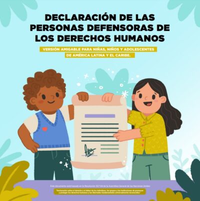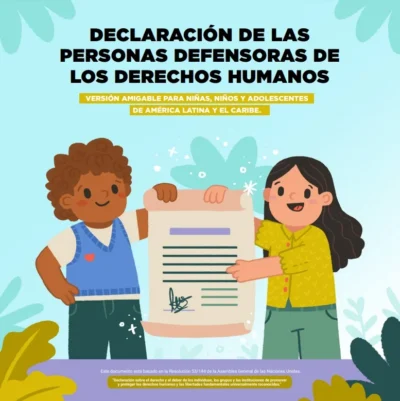 Esta versión amigable de la Declaración de las Personas Defensoras de los Derechos Humanos está disponible para su descarga gratuita aquí. Los y las docentes, organizaciones sociales y familias pueden utilizar este recurso como herramienta educativa y de empoderamiento para las nuevas generaciones.
