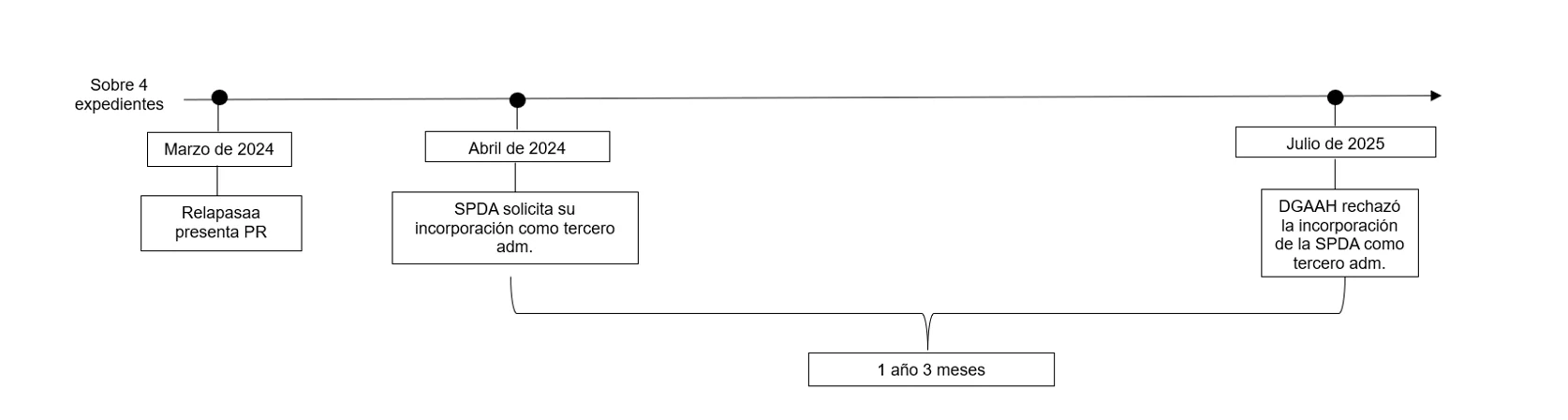 A continuación, presentamos tres líneas de tiempo que resumen las barreras procedimentales en este caso: