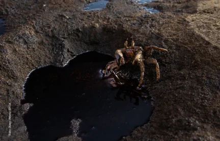 Cruzando un cerrito desde Chacra y Mar se llega a San Gaspar, una playa retirada donde el petróleo se ha empozado en la orilla de arenas doradas. Ortiz, de Chancay, camina alrededor y se pregunta cuándo llegará la limpieza ahí. En esa porción de mar existían nidos de peces, un ecosistema alterado que demorará en recuperarse. En la orilla, aparece un cangrejo empetrolado, cruzando uno de los charcos de crudo espeso.