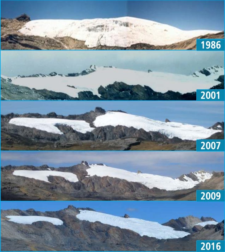 De acuerdo a un estudio elaborado por el Instituto Nacional de Investigación en Glaciares y Ecosistemas de Montaña (Inaigem), el 71 % de los glaciares tropicales del mundo se encuentra en Perú, y “estos ecosistemas frágiles prestan valiosos servicios ambientales: ayudan a regular el clima y actúan como una reserva clave de agua dulce. Sin embargo, entre 1962 y 2016, nuestro país perdió 1284 km2 de superficie glaciar, lo cual equivale a un 53.56 % del área total”. La Cordillera Blanca, donde se ubican 722 glaciares, perdió el 38.20 % (277.45 km2) de su superficie glaciar en ese periodo.