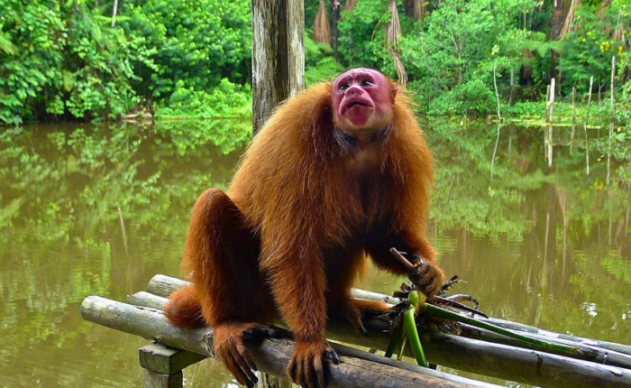 El mono huapo colorado (cacajao calvus) está clasificadas como especies vulnerables amenazadas, según la Lista Roja de la UICN. Foto: Difusión