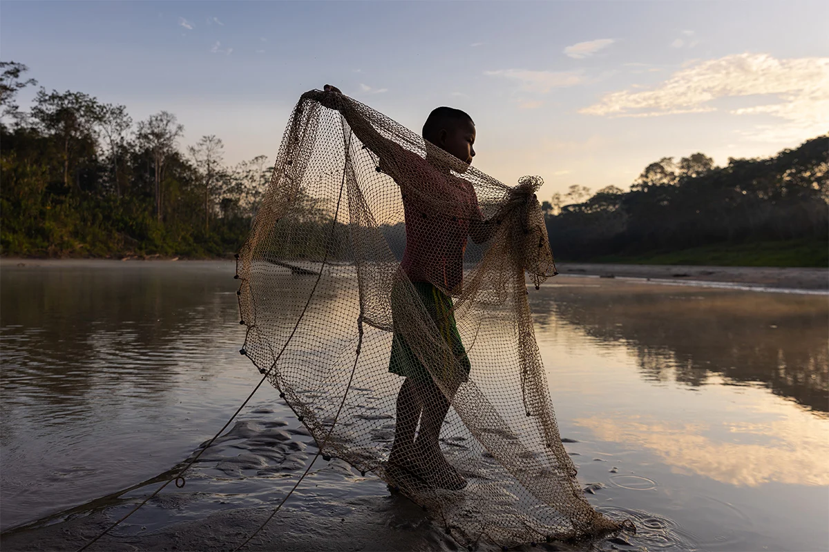“Mis imágenes buscan resaltar la belleza y la magia de la Amazonía, la dignidad de vida de las personas que habitan en sus ecosistemas y los medios de vida que practican para salir adelante en contextos tan retadores”, explica el fotógrafo. “Por otro lado, también denuncian las amenazas que enfrentan estos territorios, desde actividades económicas legales hasta ilegales, que ponen en riesgo no solo a la naturaleza sino también a quienes la defienden”.