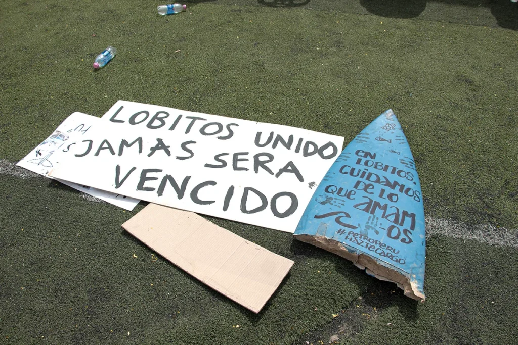 Incluso, Periche pidió a sus compañeros extraer agua del mar y percebes para que en ese momento sea consumido por el gerente de Petroperú. “Para que se dé cuenta de lo contaminado que está nuestro mar”, indicó el pescador, quien finalizó su intervención declarando como persona no grata a Oscar Vera por haber dicho que las playas de Lobitos no son turísticas, cuando se sabe que la playa Capullanas colinda con el sitio arqueológico del mismo nombre.