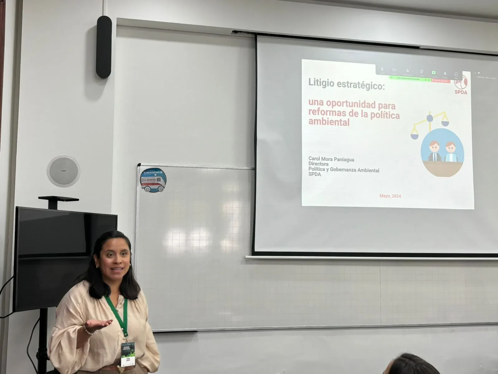 - Carol Mora, directora del Programa de Política y Gobernanza Ambiental de la SPDA, explicó las oportunidades que ofrece el modelo de enseñanza de las clínicas jurídicas a estudiantes de Derecho.