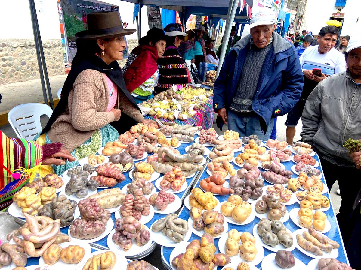 Como parte del encuentro realizaron una feria de exposición e intercambio de variedades de papas. Foto: SPDA