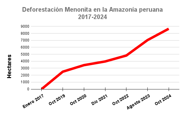 Un nuevo informe del Proyecto MAAP, resalta que cinco colonias menonitas han deforestado 8660 hectáreas en las regiones de Ucayali y Loreto, desde 2017 a octubre de 2024. Según el reporte, estos datos confirman que este grupo religioso se ha convertido en una de las principales causas de deforestación a gran escala en nuestra Amazonía.