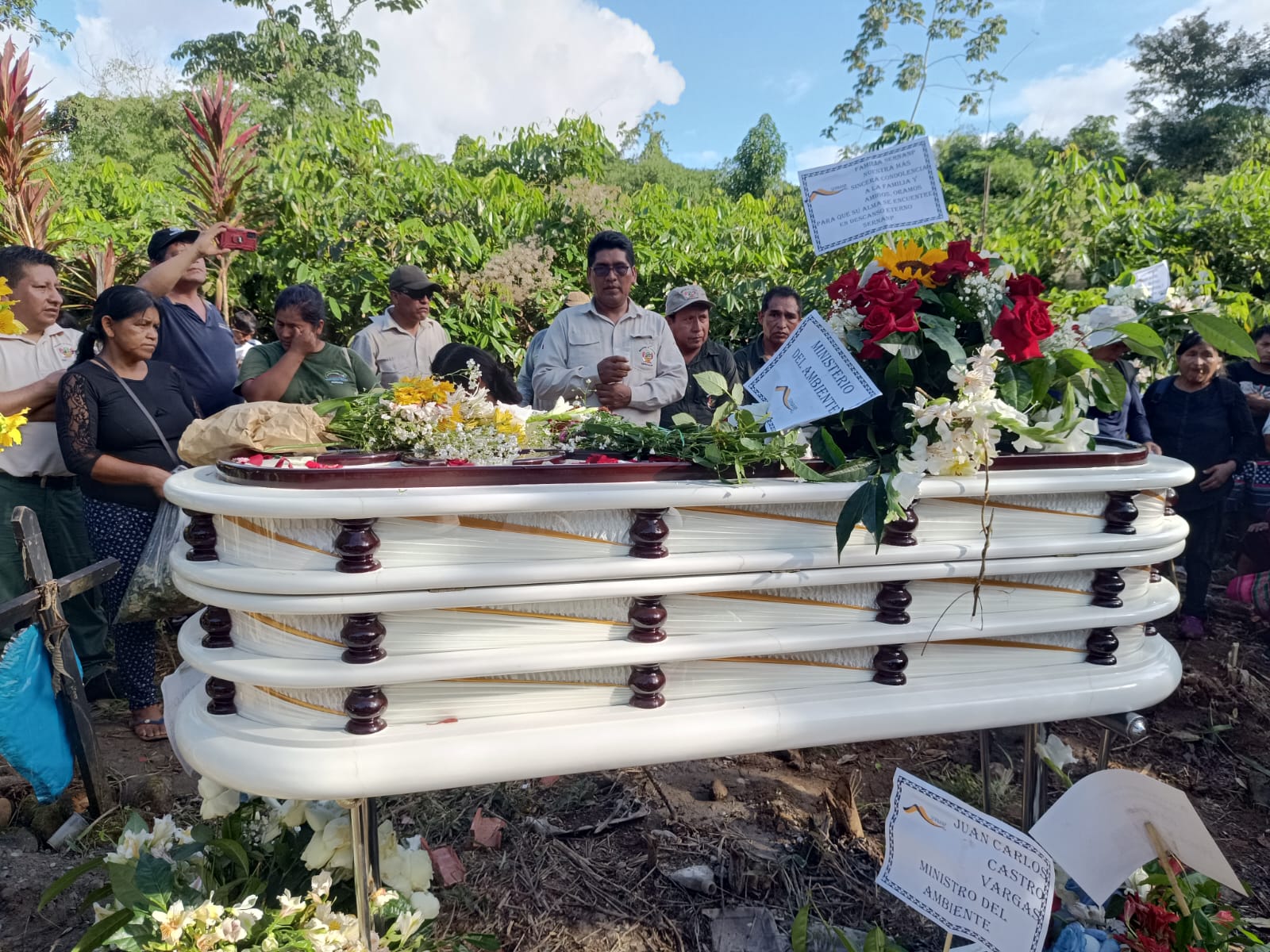 - Restos de guardaparque indígena, asesinado el viernes 19 de abril, fueron enterrados en la comunidad nativa Queros. Autoridades no descartan que la minería ilegal o el narcotráfico estén detrás del crimen.