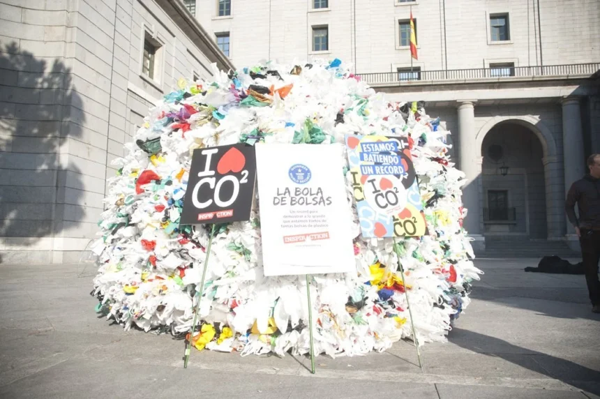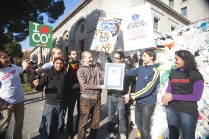 La ONG española InspirAction logró recolectar 17.773 bolsas de plástico, que fueron colocadas en el frontis del Ministerio del Ambiente de ese país, como una forma de exigir un acuerdo «justo, efectivo y vinculante» en la cumbre sobre cambio climático de la ONU, que se celebra en Copenhague.