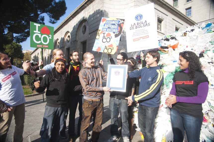 La ONG española InspirAction logró recolectar 17.773 bolsas de plástico, que fueron colocadas en el frontis del Ministerio del Ambiente de ese país, como una forma de exigir un acuerdo «justo, efectivo y vinculante» en la cumbre sobre cambio climático de la ONU, que se celebra en Copenhague.