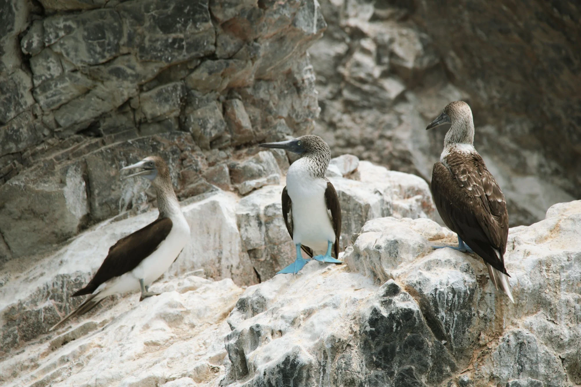 Aves con patas azules. Frente a la Isla Foca, podrás encontrar estos paisajes y observar al piquero camanay o piquero patiazul es una especie que se puede observar en este lugar. Esta colorida ave fue uno de los animales estudiados por Charles Darwin en sus trabajos sobre la evolución de las especies. Foto: SPDA