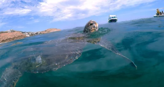Nadar con Tortugas. Un viaje corto desde Máncora permite llegar a El Ñuro, un sitio idóneo para quienes quieran vivir una experiencia única al nadar con tortugas marinas verdes y carey, las cuales abundan por ser una zona de alimentación de estas especies. Foto: SPDA